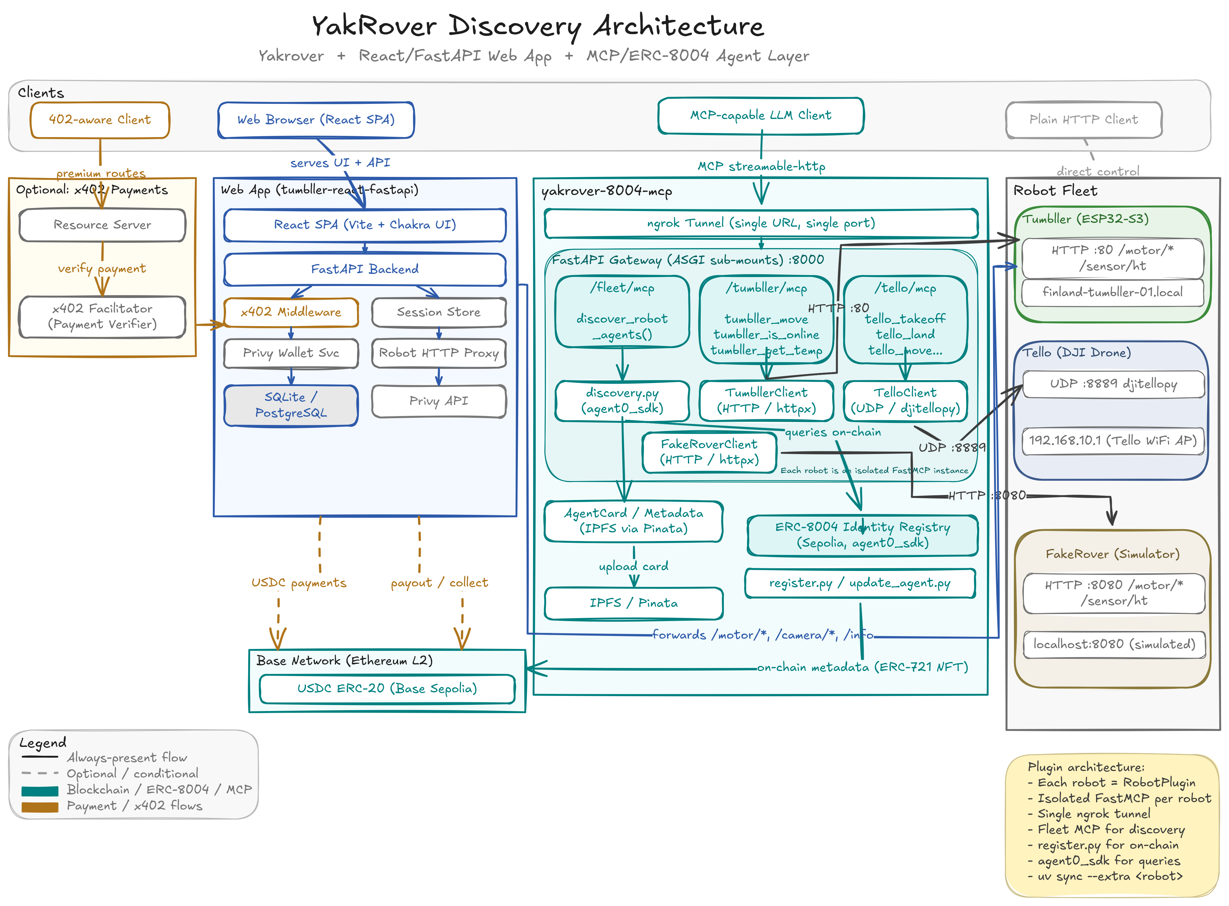 A bird’s eye view of the software stack to control the robots with farcaster frame-v1 and paybot payment gate is shown below.